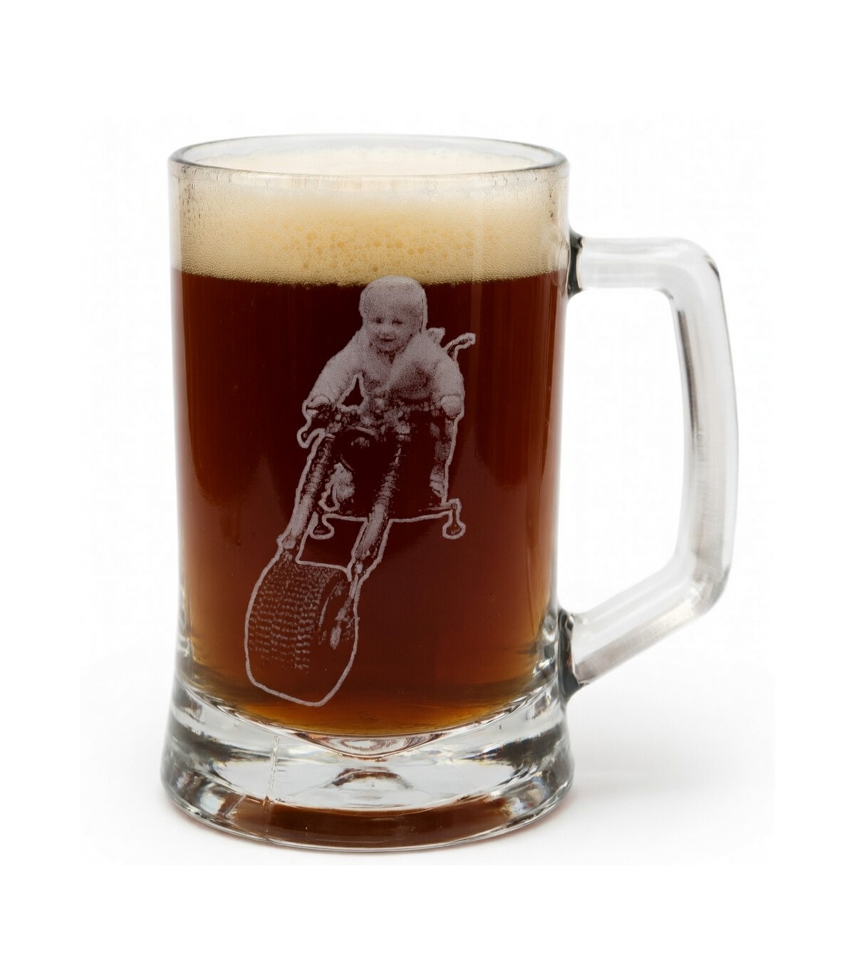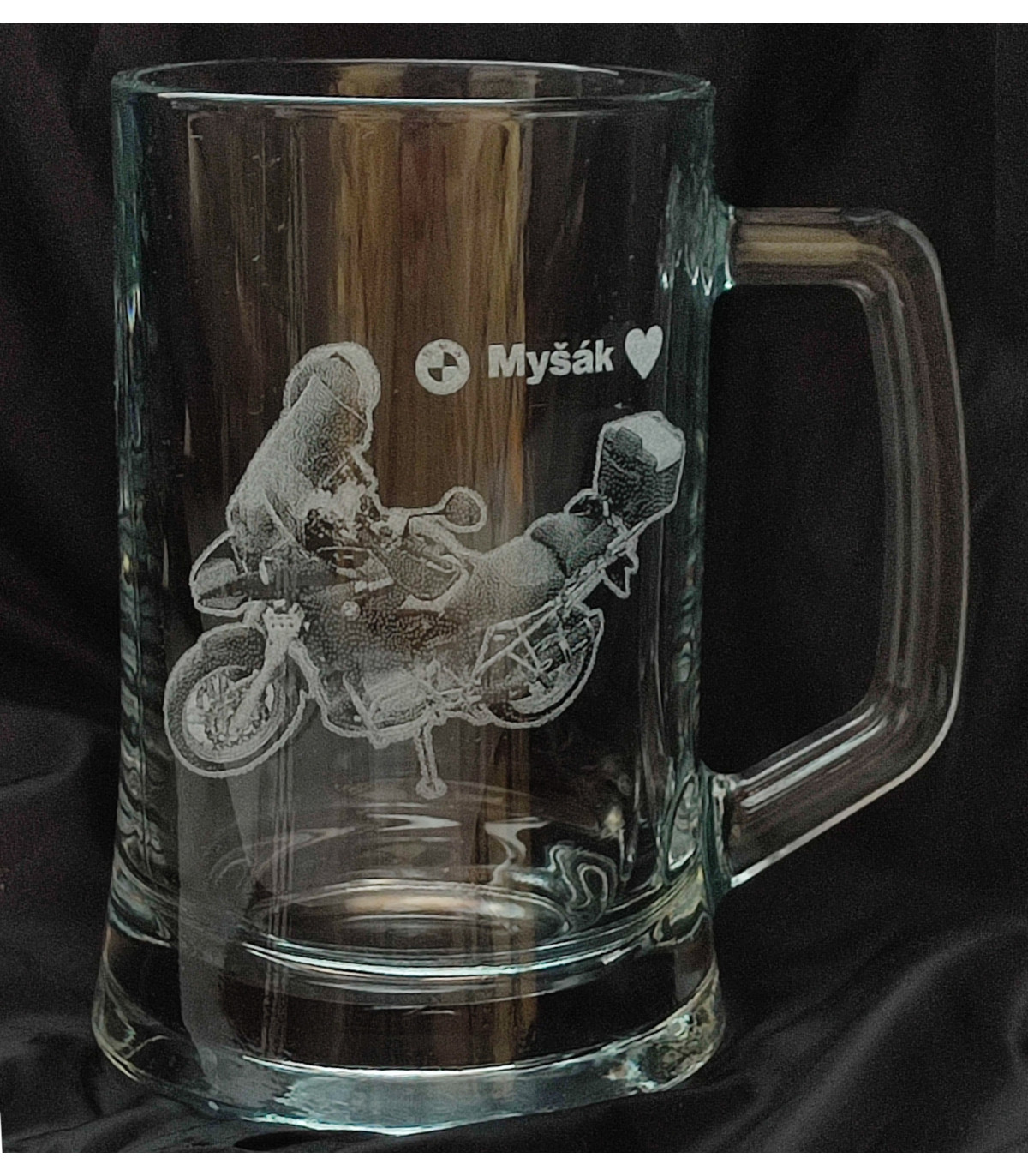 Stačí přidat fotku motorky a já ji upravím tak, aby na skle vynikla co nejlépe. Motiv následně vygravíruji do skla tak, aby působil výrazně, čistě a trvale. Půllitr mohu doplnit také o jméno, přezdívku, datum nebo krátké věnování, stačí to připsat objednávce. Nebo pokud nemáte vhodnou fotku, napište model motorky - sám jsem motorkář, správnou fotku motorky už si najdu :-)