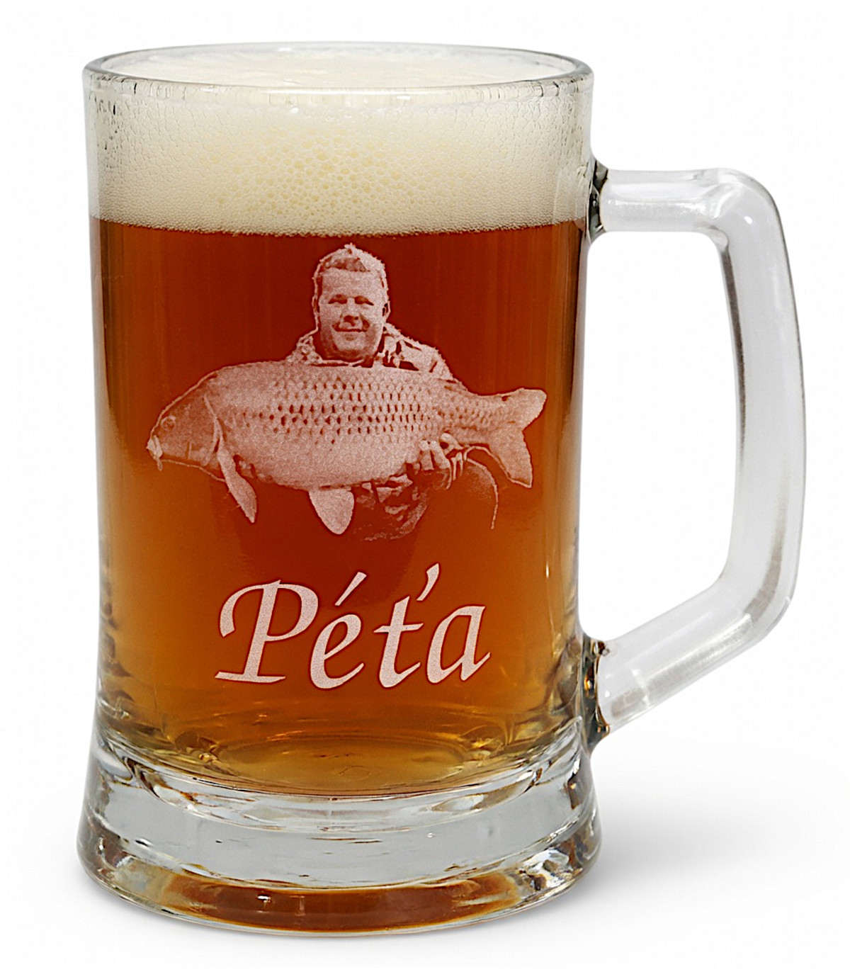 Půllitr na přání s vlastní fotkou, obrázkem, textem nebo jménem. Grafiku upravím tak, aby motiv na skle vypadal výrazně a profesionálně. Pískování nebo laserové gravírování. Stálé zdobení vhodné i pro mytí v myčce.