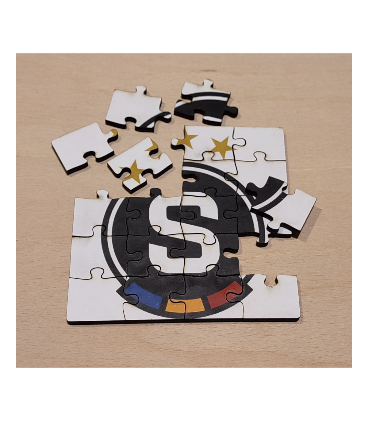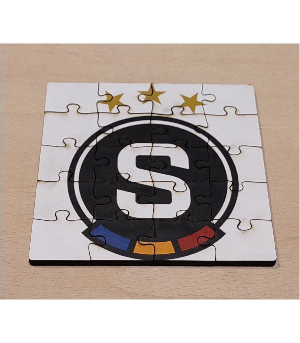 Dřevěné puzzle podtácek o velikosti 10,7 × 10,7 cm s motivem Sparta. Puzzle se skládá z 20 dílků. Vhodné jako dárek pro fanoušky Sparty. Na přání lze vytvořit také variantu s jiným obrázkem.
